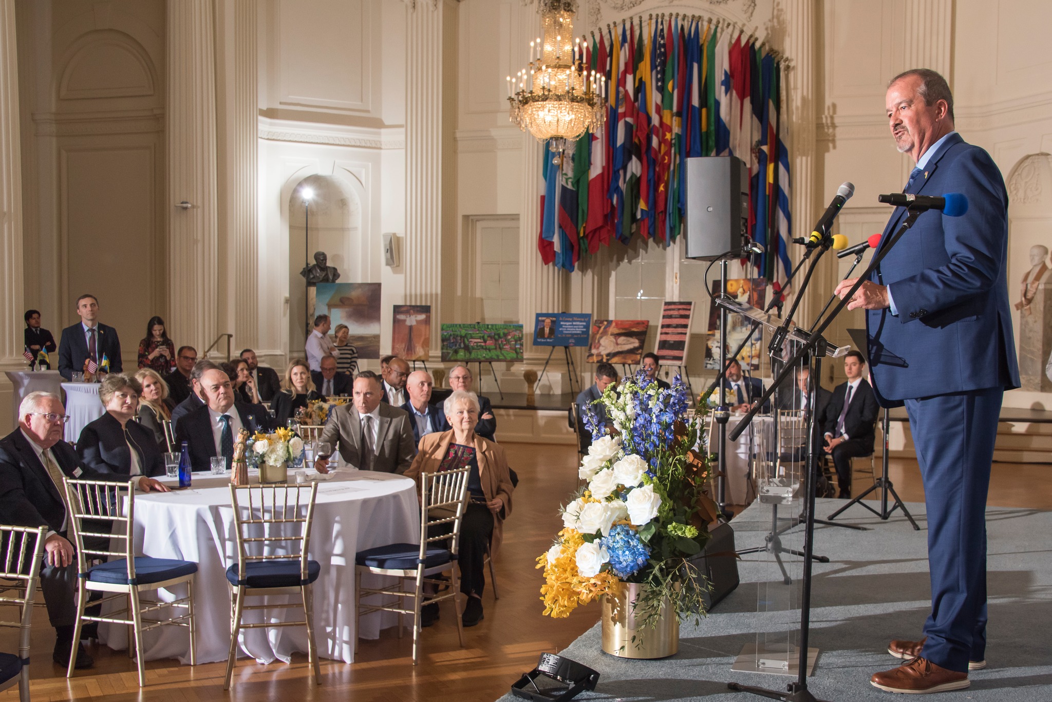 On October 30, 2024, the U.S.-Ukraine Business Council (USUBC) gathered in Washington, D.C. to honor the life and legacy of Morgan Williams, the late USUBC President and a champion of U.S.-Ukraine relations. The evening brought together family, friends, colleagues, and USUBC members to celebrate a man whose hard work has left an enduring mark on the U.S.-Ukraine business community and on Ukraine’s modern history. Held at the famed landmark, Organization of American States, the event highlighted Morgan’s lasting impact and commitment to Ukraine’s independence and prosperity.